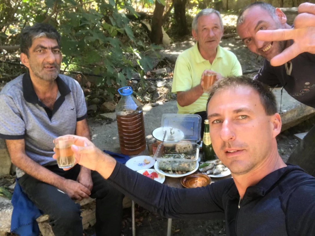 I was able to get across that I’m a photographer from the US. Immediately the Georgian hospitality I had heard so much about kicked in, and soon we were all seated around their table as I was being made to drink glass after glass of homemade wine. I speak no Georgian except for the few touristy phrases I learned for the trip, and likewise they spoke almost no English. But most Georgians over a certain age speak Russian (the country was a part of the old USSR) and I speak Polish, a closely related Slavic language. Thus we made halting, stunted conversation while my glass would get refilled the moment I would set it down. I think at least an hour passed this way; each time I motioned that I would like to get up and shoot the place, they insisted I sit and drink. While this was not unpleasant, I was beginning to worry. These guys were squatters, certainly not well off, and they knew I was an American tourist well on his way to being drunk. As it turned out, they were just doing their utmost to be excellent hosts. Unused to visitors, they wanted to know everything about me. The conversation went slowly, and at times we resorted to sketching out ideas on paper when words failed. Only when I had drank about 2 liters of wine culminating in a weepy toast in which it was proclaimed that we were all brothers, I was allowed to unsteadily explore the area.