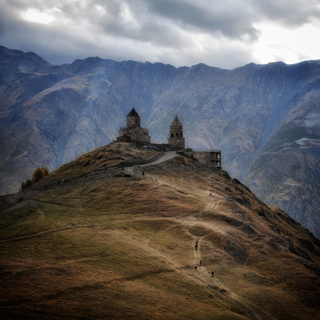 One thing that sealed the deal for me about visiting the country of Georgia was this mountaintop church overlooking the town of Stepantsminda. It is roughly a three hour drive north of Tbilisi on the Georgia Military Road, about ten kilometers shy of the Russian border.