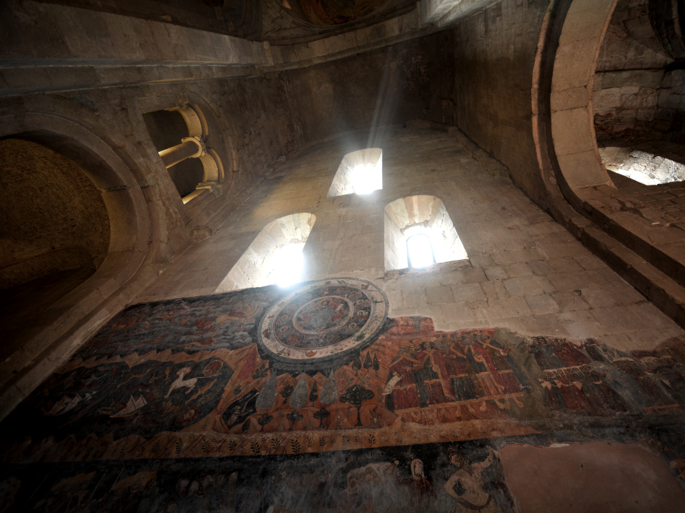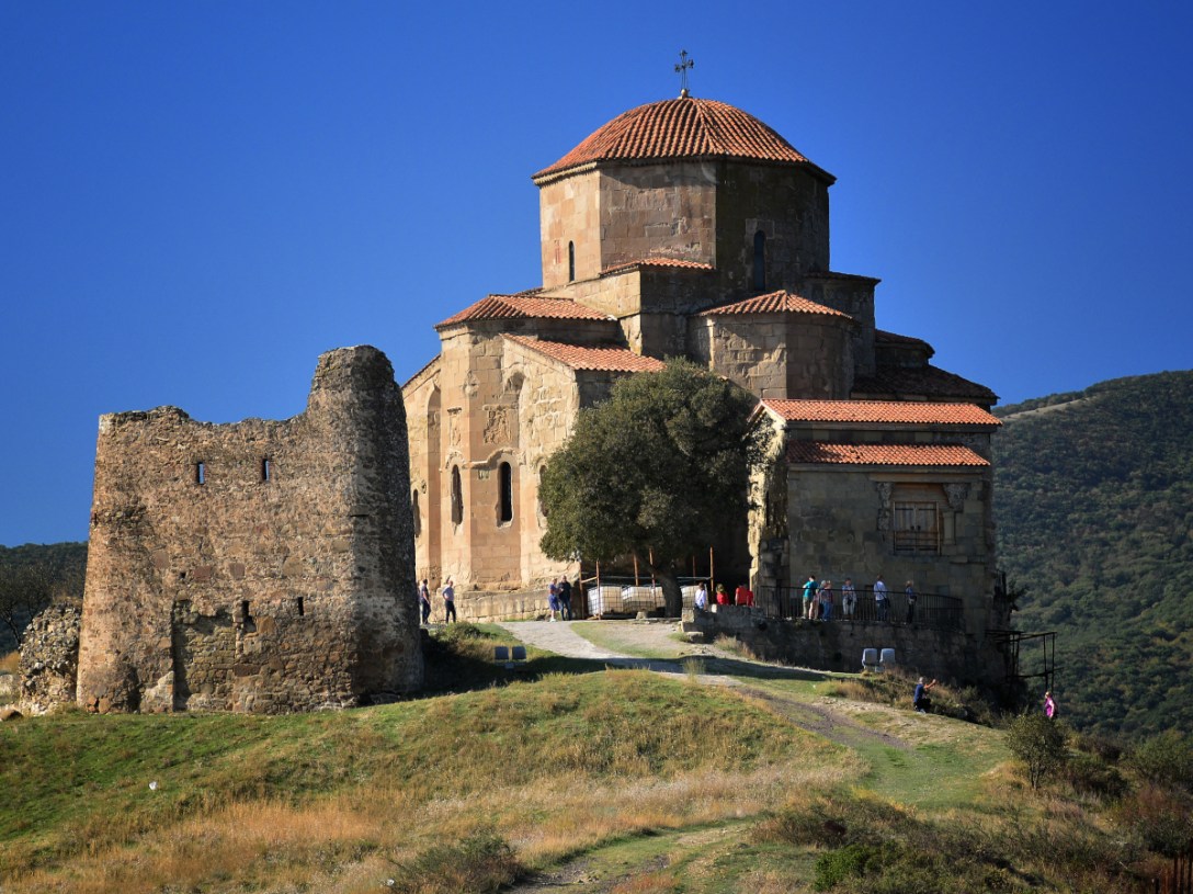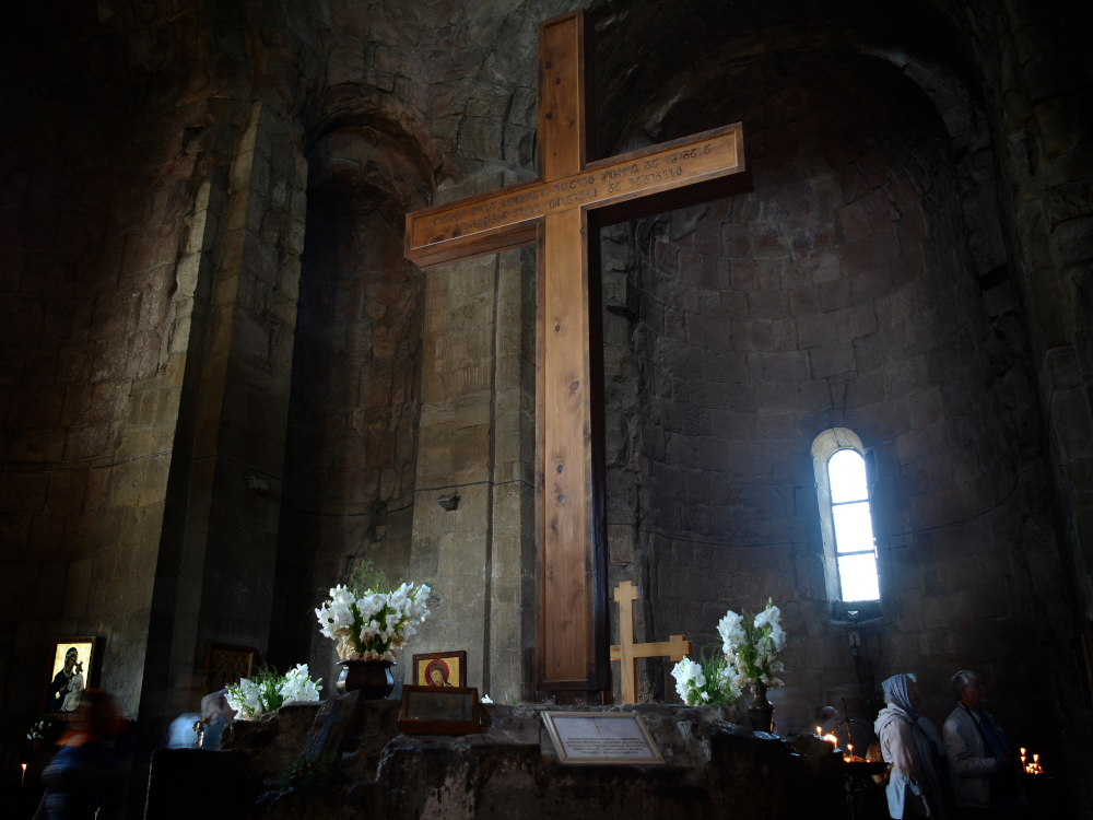 The exception to the riot of color seems to be the Jvari Monastery of Mtskheta, built on a hilltop overlooking the confluence of the Aragvi and Mtkvari rivers. Legend has it this church was built on the very spot where the first cross in Georgia was raised. It is ancient, and seems to predate the ornamentation that would later become common.