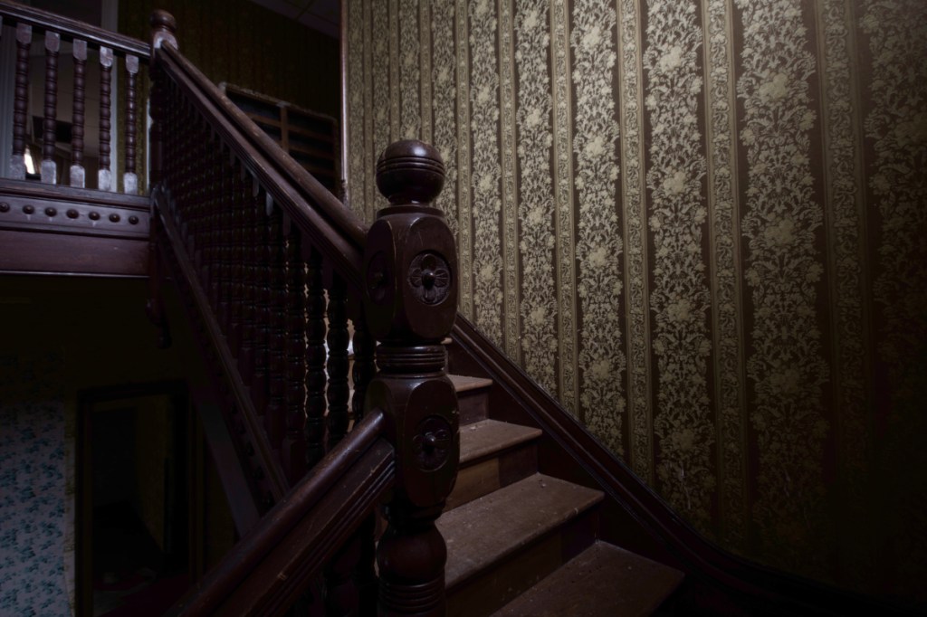 It looks to be roughly a century old, not quite reaching back to the fussiness of the Victorian era, but retaining some of the elegance that was lost by World War II. The house was stripped bare save for a couple rooms strewn with the kind of junk people give up on when they move: outdated clothes, old and broken eletronics, toys, and the like. There was one notable exception in the master bedroom, where a king size bed looked still ready to sleep in.