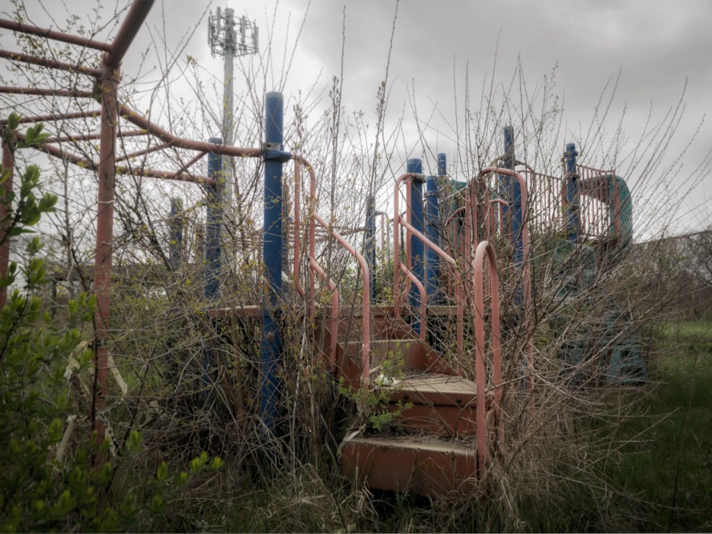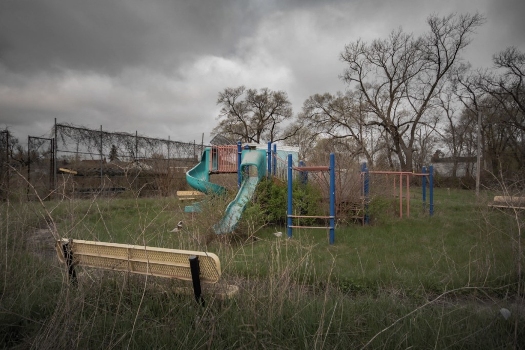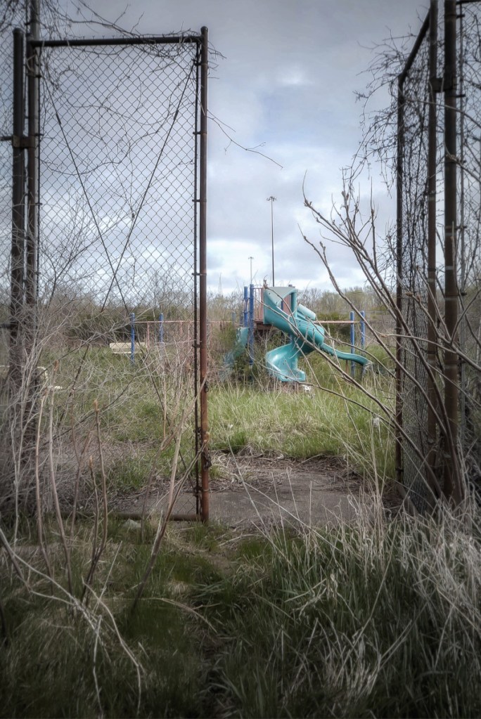 Anyway, on a trip last spring, most of our time was spent shooting outside. A small playground close to the interstate proved an interesting find, wild and overgrown. We then meandered through the surrounding neighborhood. The homes we found weren’t too compelling on the inside, but some exteriors proved dramatic and haunting. Here’s some shots from that brisk April day.