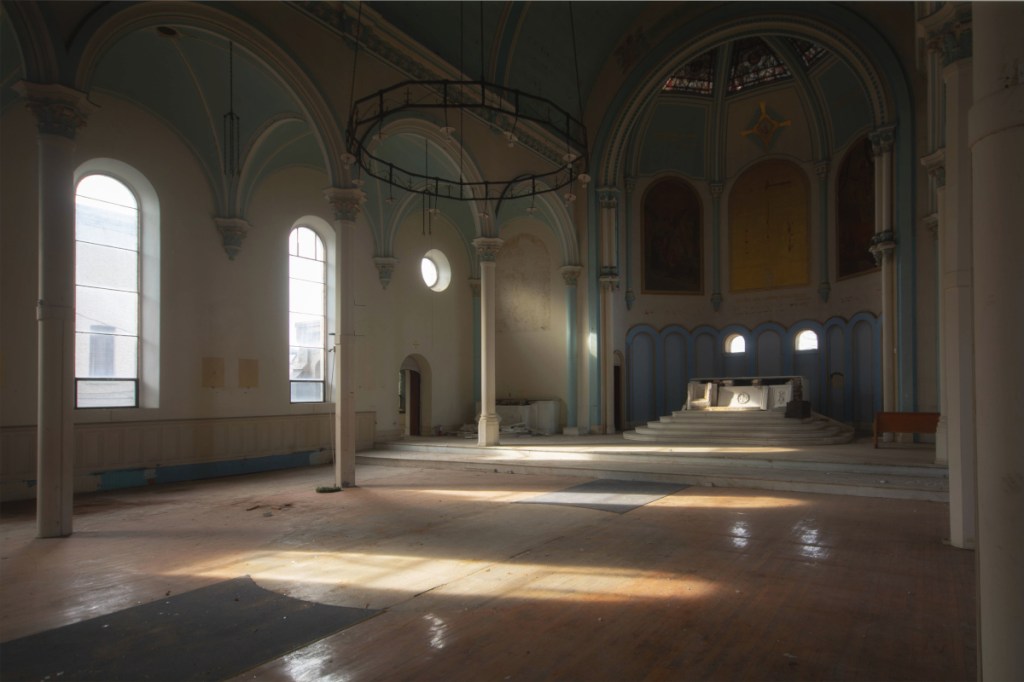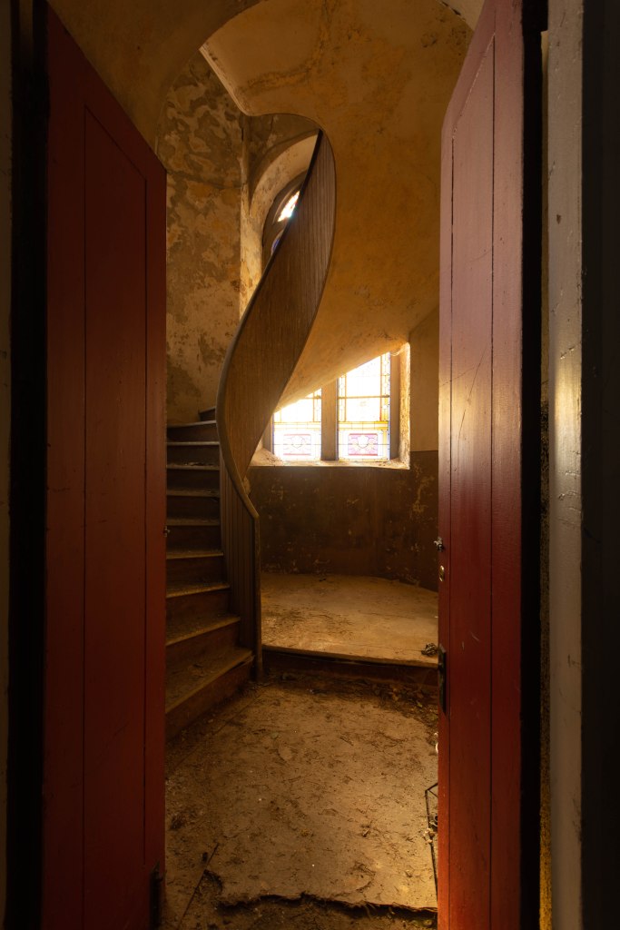 This time around, a spot was open and we made it inside the actual church. Though stripped of Its pews, the bright January sunlight poured in through windows and created some beautiful scenes. In particular, one of the stairwells leading to the balcony was simply aglow. It wound up being a quick shoot, but yielded several shots I’m pretty happy with.
