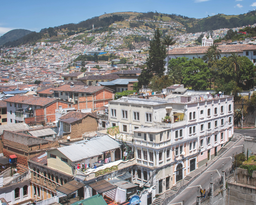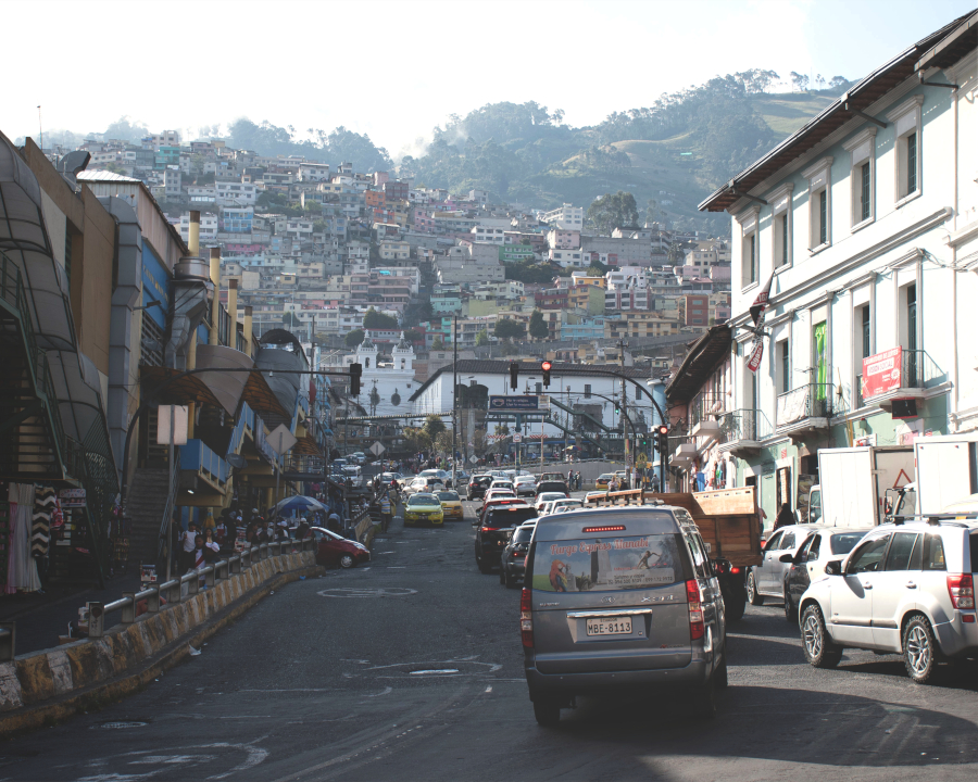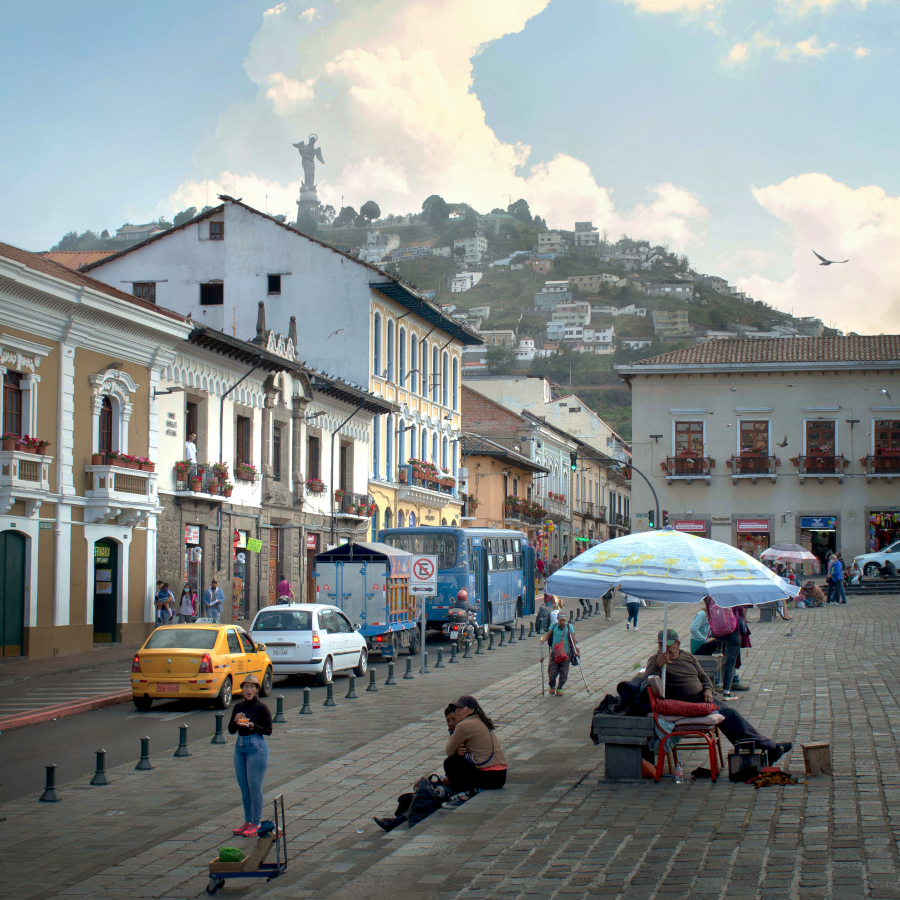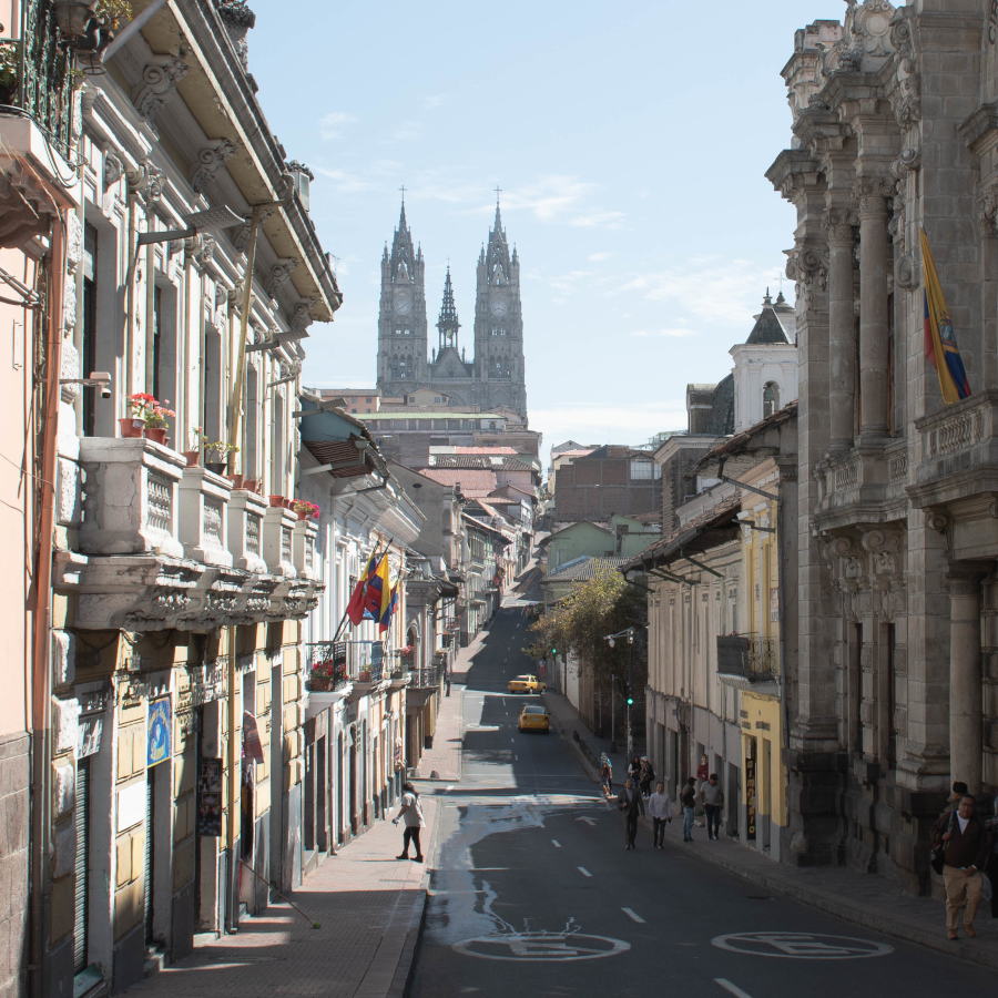 Quito lies in a narrow valley high up in the Andes mountains, a city of three million perched at almost two miles in altitude. With very few tall buildings, its skyline is entirely alpine in character, consisting of a panoramic view of the mountains. From the historic town center, the view can be like something out of Inception, as surrounding neighborhoods seem to rise almost vertically at the end of every street. The colonial-era Spanish churches are beautiful, as is the massive nineteenth-century basilica, which itself is the tallest building in Quito. It is a fun town to photograph.