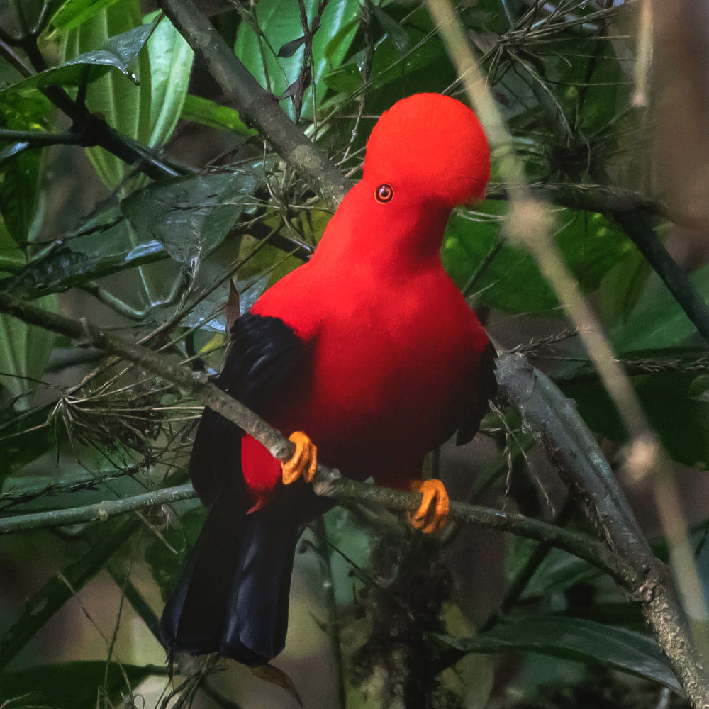 Thus we found ourselves hiking in the pre-dawn hours towards a place in the jungle where the ridiculously plumed cock-of-the-rock was known to be found. One of the neat things to notice close to the equator is just how quickly the sun rises and sets, and I watched the sky go from a deep murky gloom to bright day in the twenty minute walk to the spot. We could hear this bird long before we could see it, as its decidedly un-melodic screech easily cut through the foliage. Once there, I set up my tripod and started shooting. It was easier than I thought it might be; my biggest challenge initially was getting the settings on my camera right. In the end I came away with a few shots I’m not ashamed of.