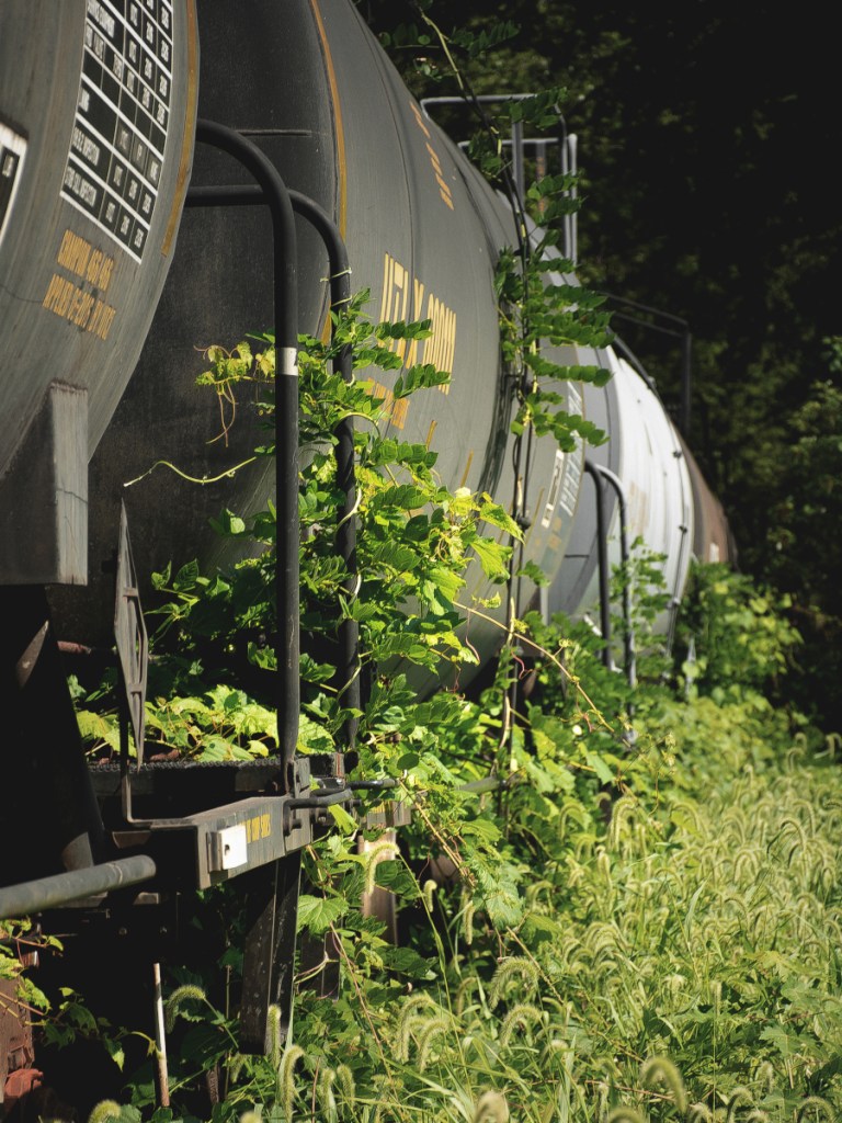 But that brings me to the here and now; the title of this post referring to both where these pictures were taken as well as my present level of burnout. Maybe it helps explain why I’m just now getting around to posting photos from a year and a half ago. Anyway, here we are: a hot August in central/southern Illinois. Our goal that day was this old Victorian mansion, but we also came across a freight train left on a disused stretch of rail in the woods, as well as an old farmhouse that perhaps wasn’t as abandoned as we thought it was.
