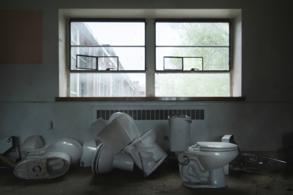 This building took up the lion’s share of our day. The highlights of the few others we got to see were a funky modernist chapel, midcentury furniture, and a rickety attic catwalk that I dared not attempt. The day ended with some more exterior shots; one of the site’s water tower nicely lit and framed by a collapsed fence, and later, an outbuilding with a late spring thunderstorm brewing behind it.