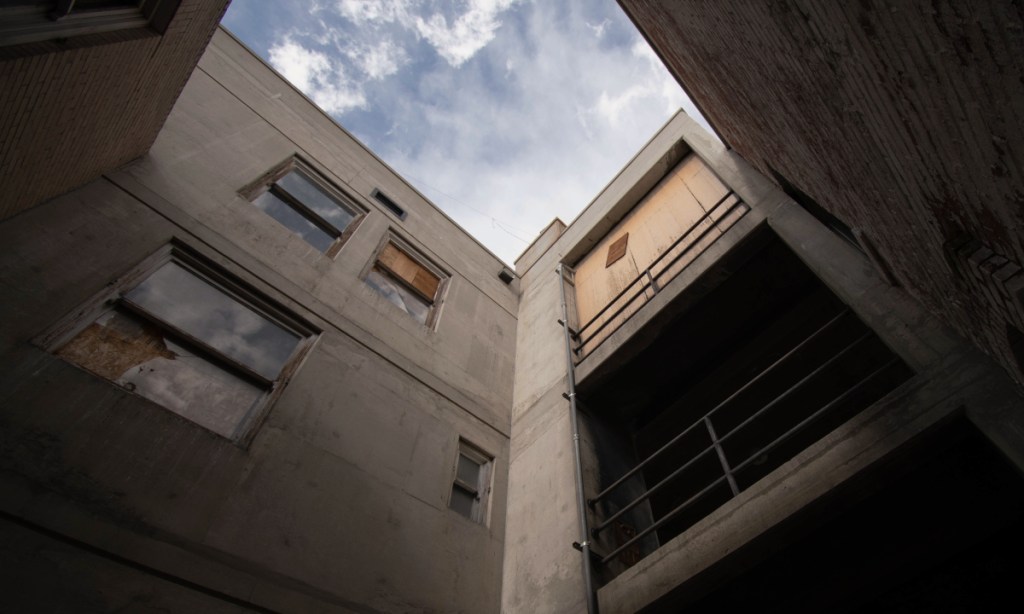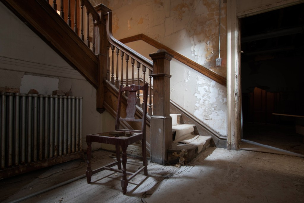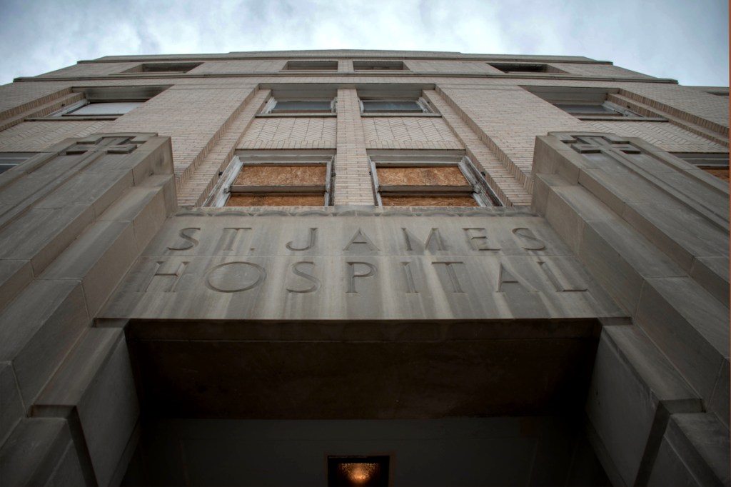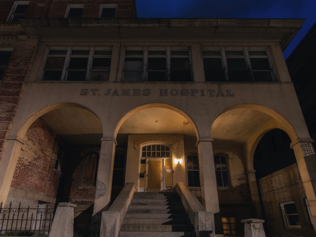 Located in downtown Butte, Montana, St. James hospital had been closed since 1962, and abandoned for decades. When we arrived in town on our recent road trip, we thought we’d have a go at shooting the building. When we rolled up we quickly saw that, though it was rough condition, the place was well sealed up, and even had a couple cameras mounted on the exterior. It was clearly being taken care of by somebody. Dissapointed, we loitered a bit, taking a couple exterior shots, until we came up to the front entrance. There, taped to the inside glass of the door, a handrwitten sign greeted us, offering tours with a phone number to call. Somewhat incredulously, we dialed the number, and in literally 5 minutes and a venmo transacton later, a young man had pulled up in an old pickup truck and we were ushered inside.