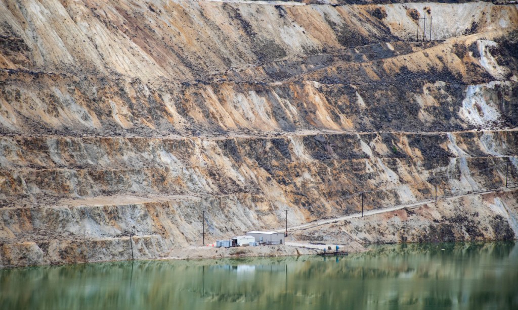 This small cluster of buildings on the shoreline may give a clue as to the sheer size of this pit .