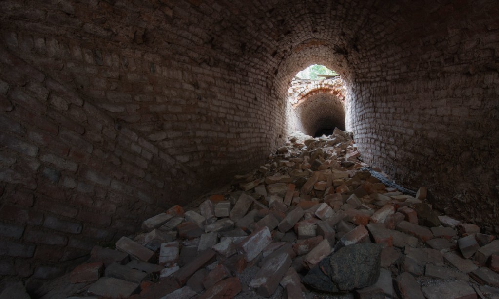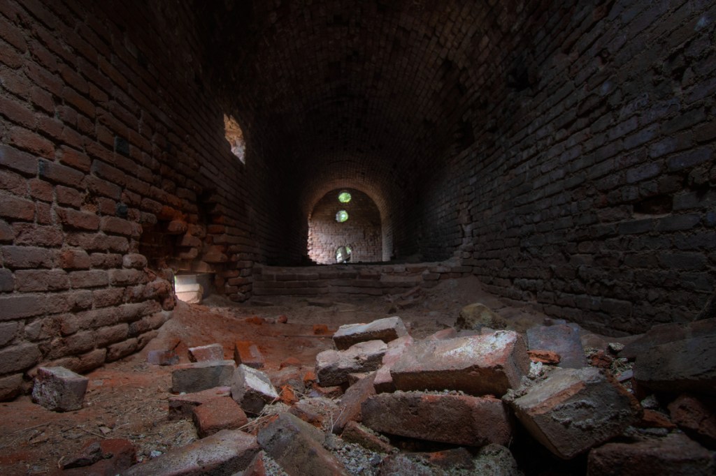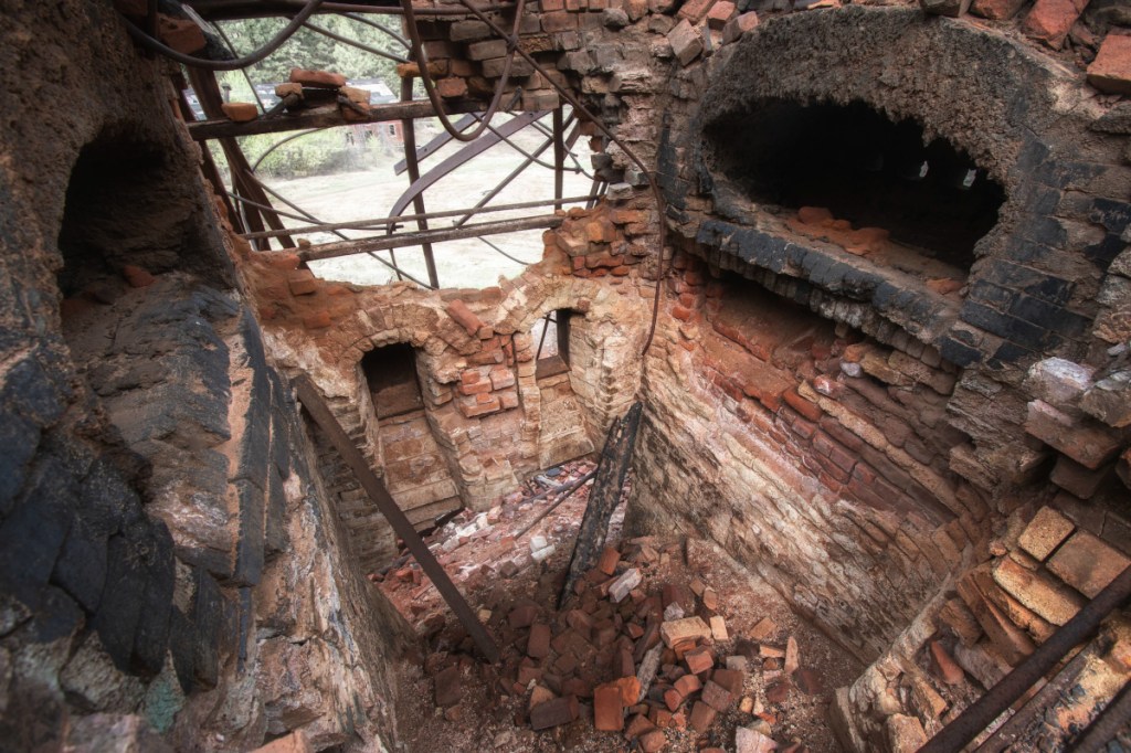 The two smokestacks visible in the first image above were quite a bit higher up and set back from the hillside where the other machinery was. The kilns on the lower part were connected to the chimneys via tunnels that ran diagonally uphill just below the surface. I’m not sure what the reason was for these subterranean chimney extensions, but after the scramble to get to the top of the hill, they made for relatively easy and scenic paths back down.