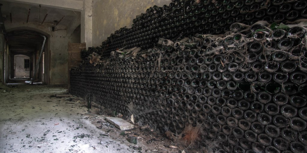 Above and below: shots from a vineyard estate, with empty bottles waiting to be bottled and a cellar full of wine arranged by vintage. As tempting as it would have been to take one, they all looked like they had at least partially evaporated off, indicating the remaining wine inside had probably skunked.