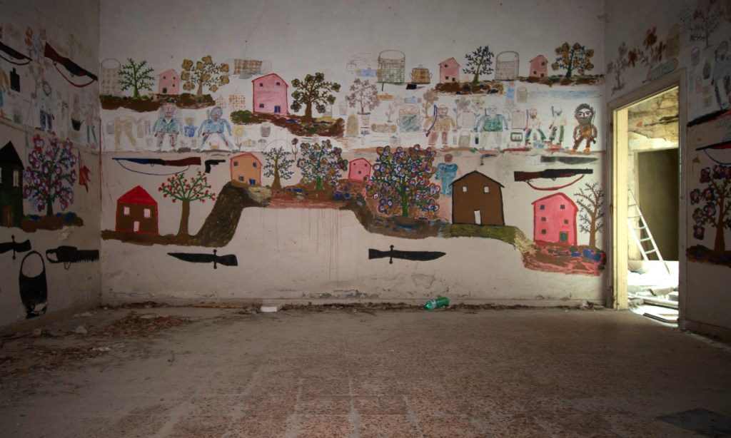I alluded to this in an earlier post. These drawings were in a villa later converted into a psychological facility, suggesting that it was perhaps some sort of outlet for kids traumatized by war, but I can’t be sure.