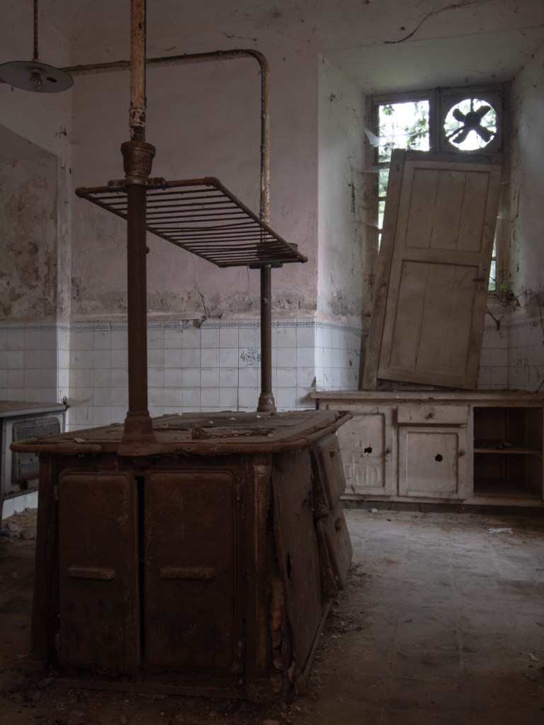 Next, an old kitchen with intact stove, as well as the aforementioned time capsule.