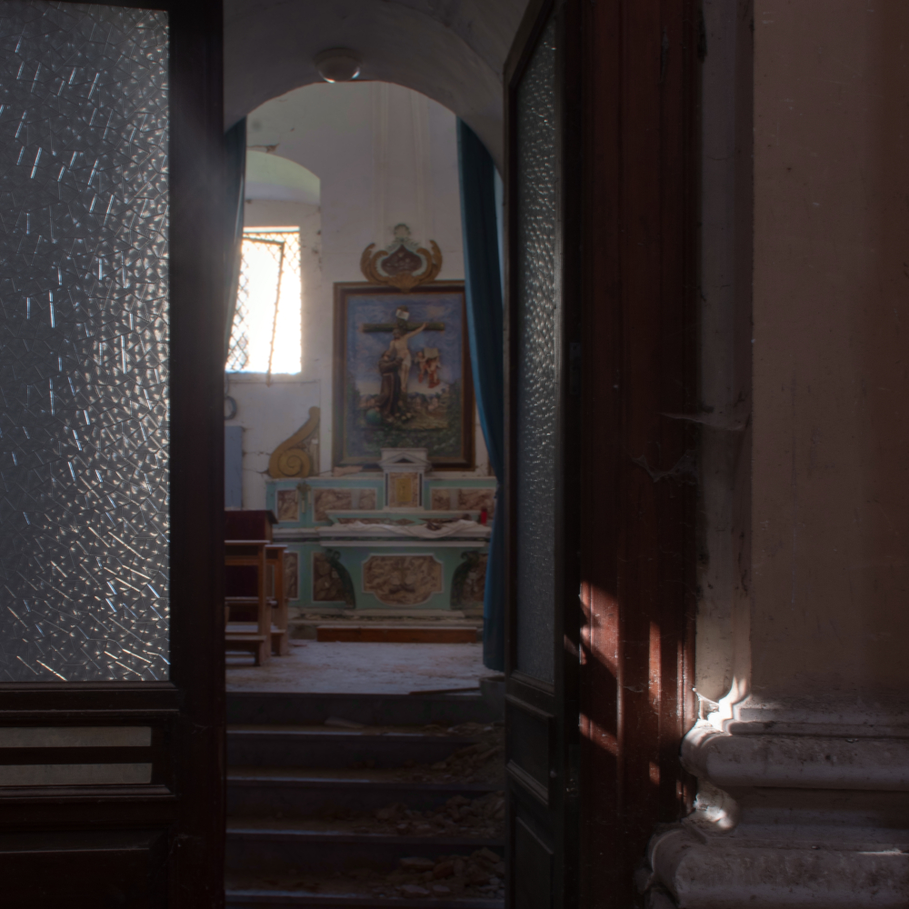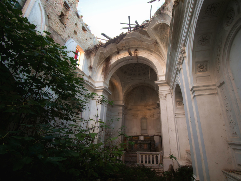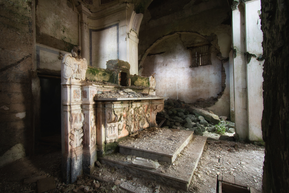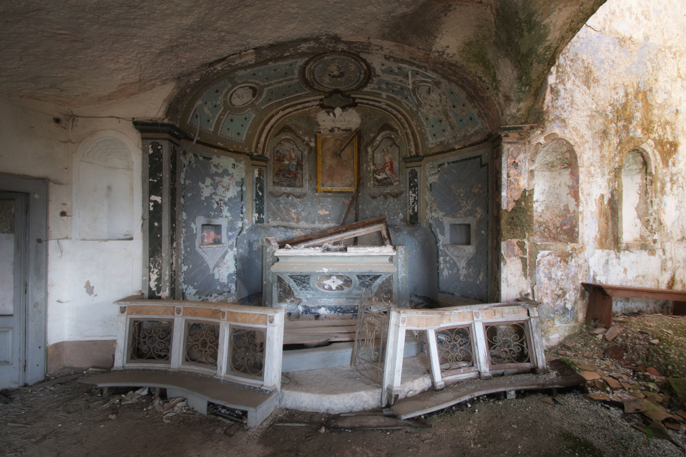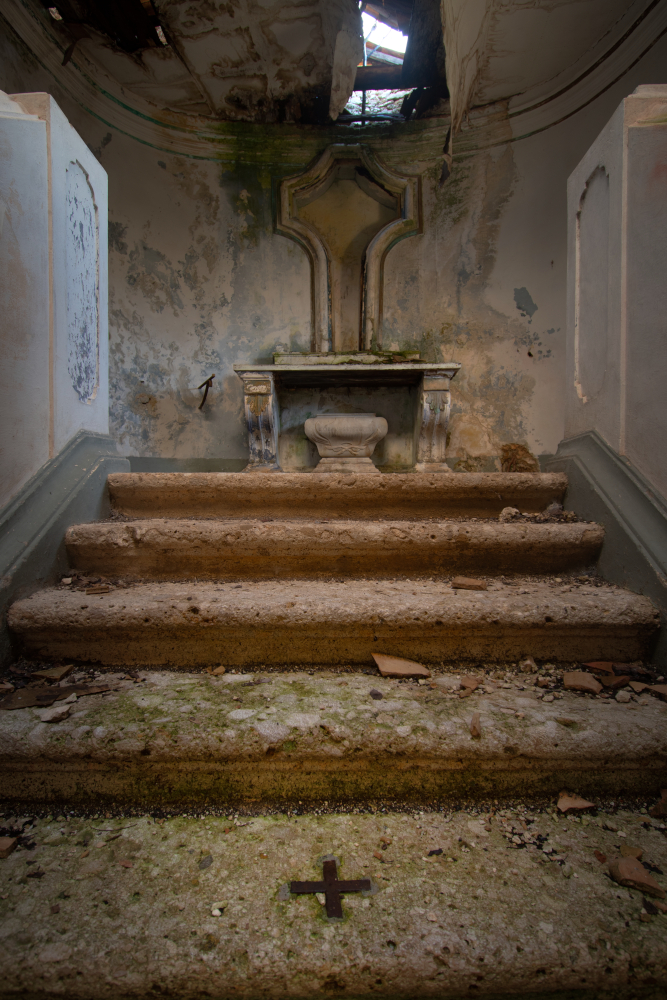 Finally, a couple shots from this church outside of Sorento. It was a relatively quick shoot, as the outside wasn’t much to look at and the adjacent buildings were so ruined and overgrown that they left little to photograph. The decay in the church itself was pretty extensive, as this shot of the altar shows.