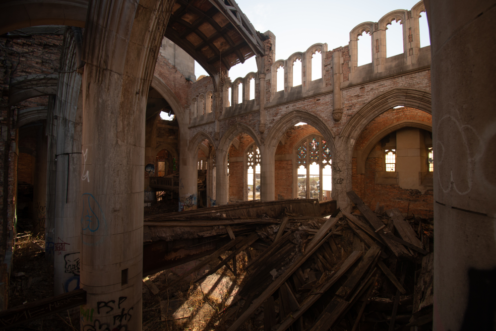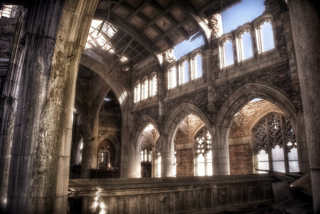 That is to say, Gary is not without its risks. The city has been changing, with many abandoned sites getting razed and police taking trespassers more seriously than they did when I started out. This is bittersweet, as I wish this city the best and understand that “the best” means not being a playground for urbex photographers. But when we got the news, not long after visiting a couple weeks ago, that the First Methodist Church was up for demolition soon, it hit hard. I am not very sentimental, and accept that abandonment and decay are usually a one way ticket to utter ruins for most buildings, even as it allows me to do the kind of photography I love. But… this was the building that first made me realize just how beautiful decay could be. I will miss it when it is gone.