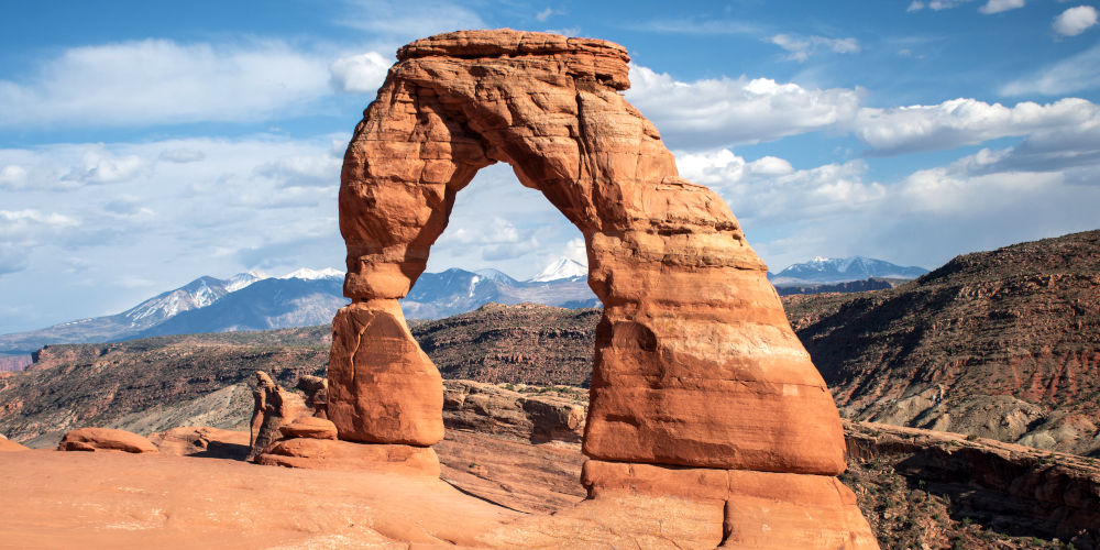 Located a few minutes outside of the town of Moab, this aptly named park is best known for its many natural sandstone arches, eroded over eons by wind and rain. The most famous of these, Delicate Arch, is featured on Utah’s state license plates. The park has some two thousand arches, along with many other formations such as spires and fins, all carved out of the area’s distinctive ruddy sandstone.