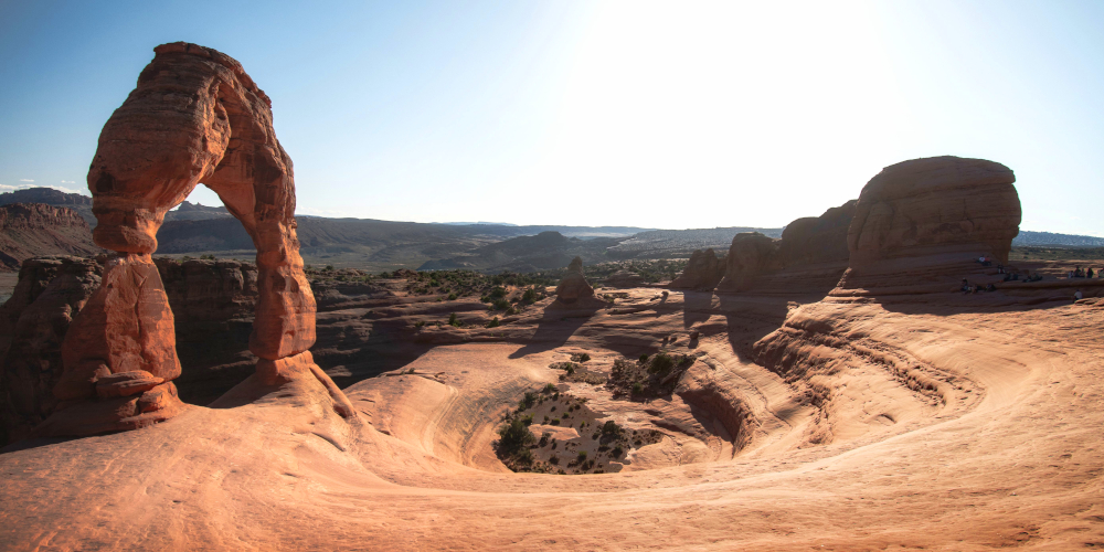 I was not aware that the this landmark sits on the southern brim of a large natural bowl, itself a pretty striking rock formation. If you look closely, you can see many people in the shadows on the right of the frame.