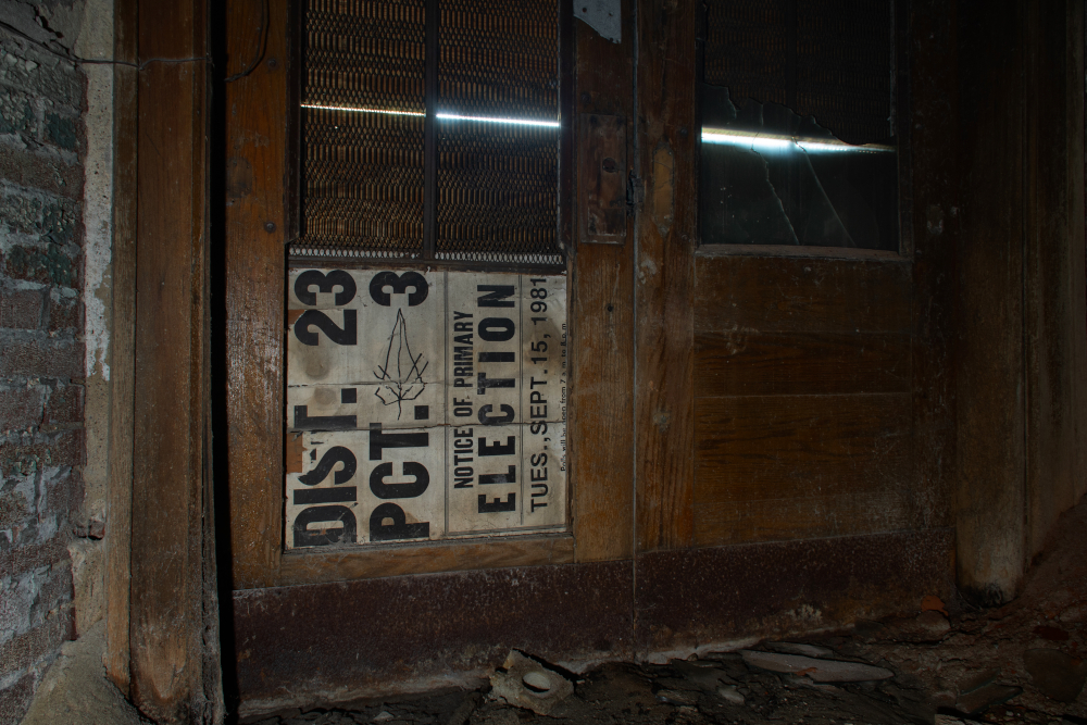 With travel time there and back, I essentially had one very full day of shooting in town. I’m pretty happy that I got enough from that single day to break out into two posts. I struck out at my first spot, but got into the next three, two of which were just spectacular. Today, I’ll concentrate on one particular church and parochial school on the city’s north side. We’ll start in the rectory and school, which, though not as spectacular as the church building itself, each offered some interesting details. If you were wondering just how long this place has been abandoned, the first shot offers a clue: