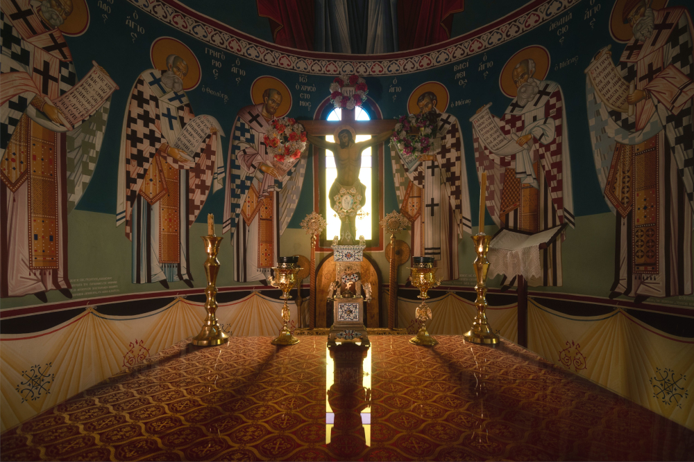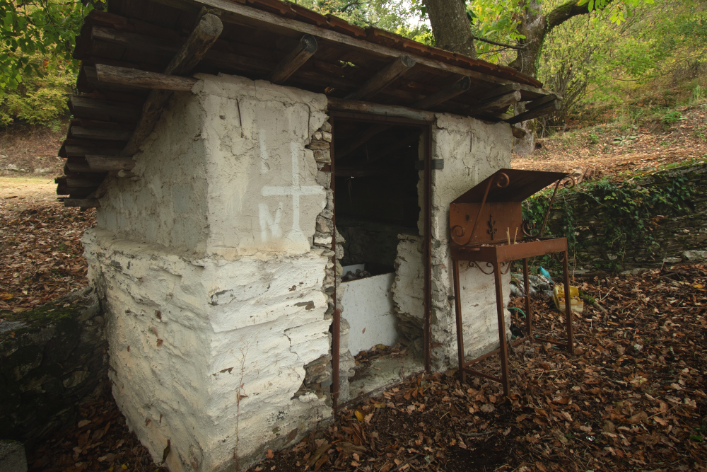 One of the first stops was the church, which was, in fact, not abandoned. We found that, in Greece, churches get preserved even when they have very few worshipers to serve. In many cases that simply meant maintaining a roof to keep the building from falling into ruin, but Skoteina still has a few at least part-time residents, so it looked like its church was still getting regular use. It remains wild to me that these churches remain completely open at all times. We were, of course, respectful, but I would worry about thieves or vandals having the same access as us. Still, hard to get a shot like this anywhere else: