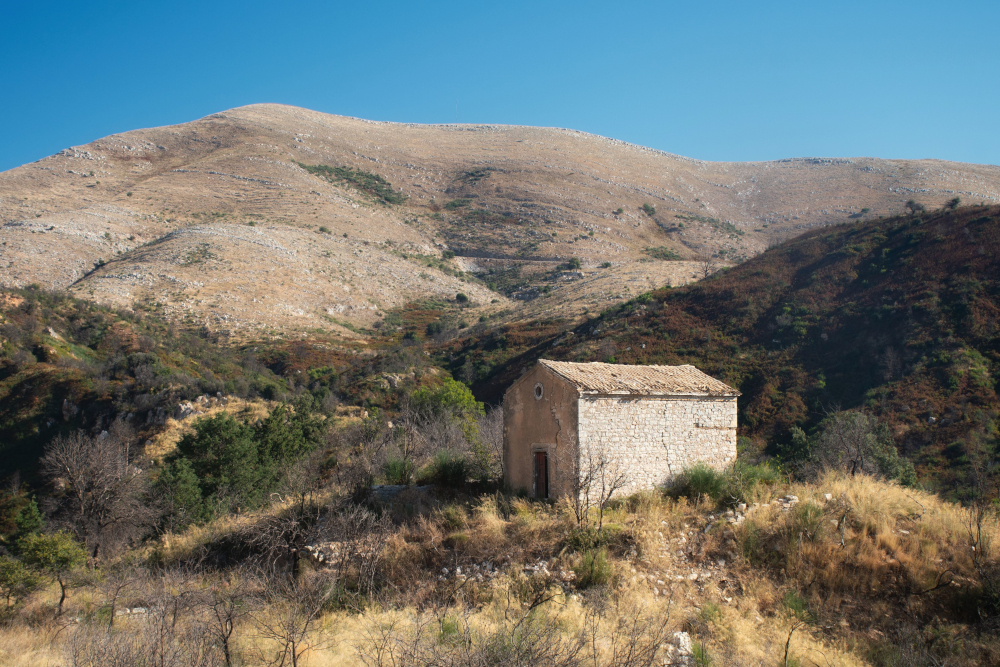 The island of Corfu has had a fraught history. Over the centuries, it has changed hands among the Greeks, Venetians, Byzantines, and Ottomans, among others. Its location, in an important sea lane where the Ionian Sea meets the Adriatic, has been a double edged sword. It led to Corfu Town, the island’s biggest city (which I covered a couple posts ago) becoming a key strategic fort, but often brought unwelcome attention to the island from pirates. Villages on the shore, with their easy access to fishing and trade, could be risky. Islanders began building settlements well inland, among Corfu’s deep valleys and out of view of the sea. This post is about one such town, namely Old Sinies.