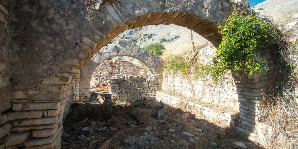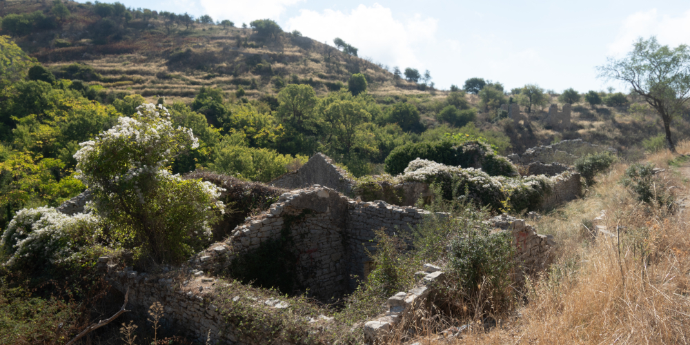 By modern times, the threat of piracy had receded and the call of modern life elsewhere would start the exodus. Though shepherds would use the town until the mid sixties, by the mid twentieth century, Sinies had been abandoned. Today, with the exception of the churches which in Greek fashion continue to be somewhat tended to, it is mostly in ruins.